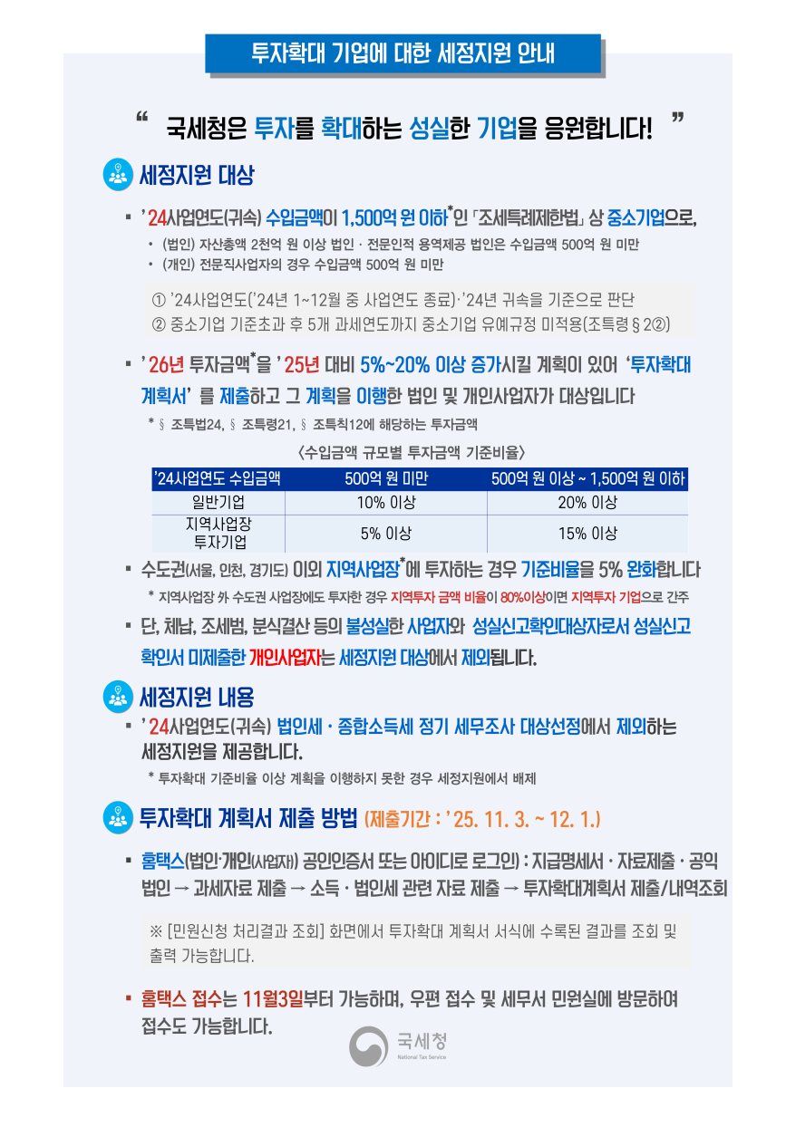 2025년 투자확대 기업에 대한 세정지원 안내(안).hwpx