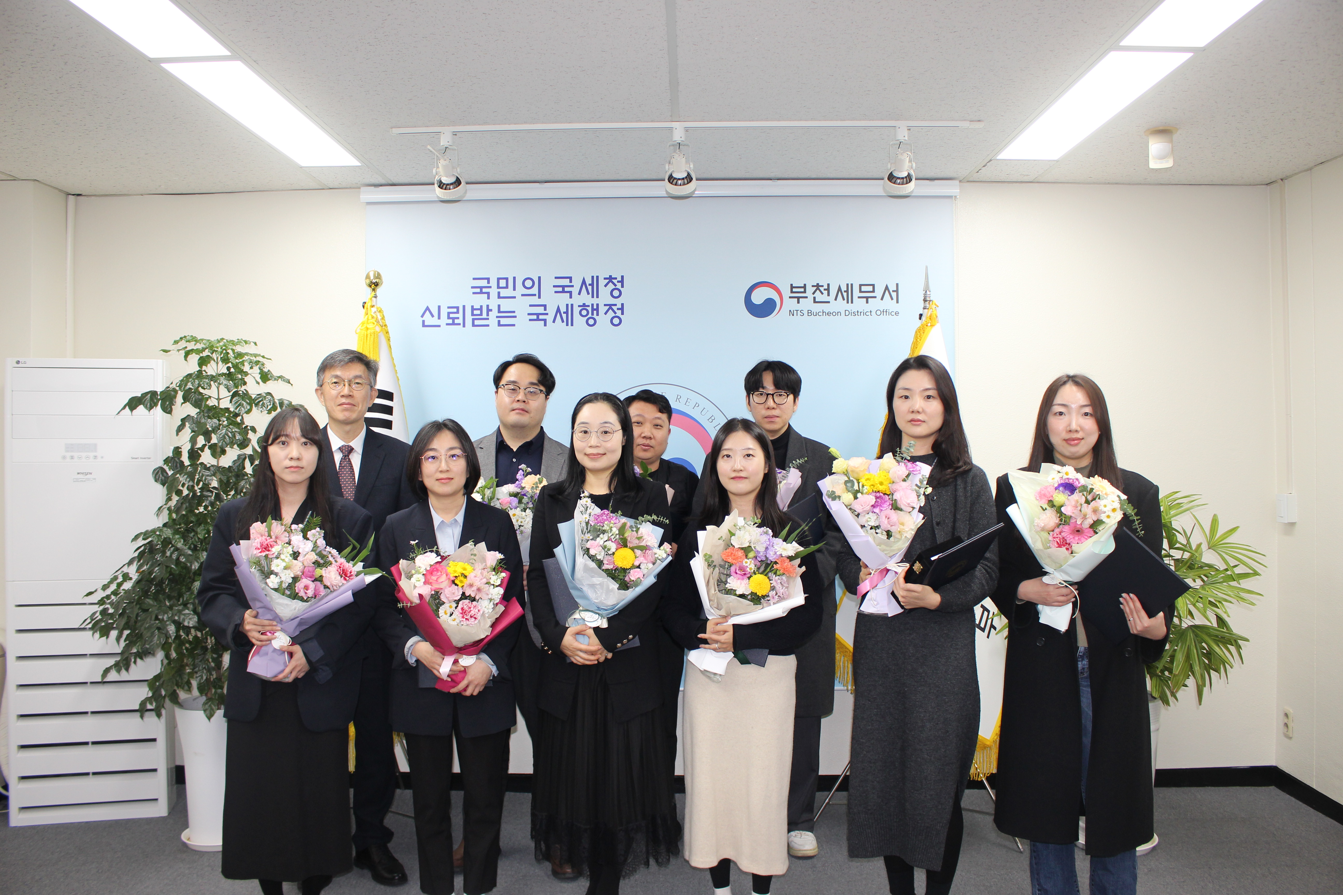부천세무서(서장 김영기)는 2025년 11월 25일(화) 字로 승진한 9명의 국세조사관에게 임명장을 수여하고 승진을 축하하는 시간을 가졌습니다.