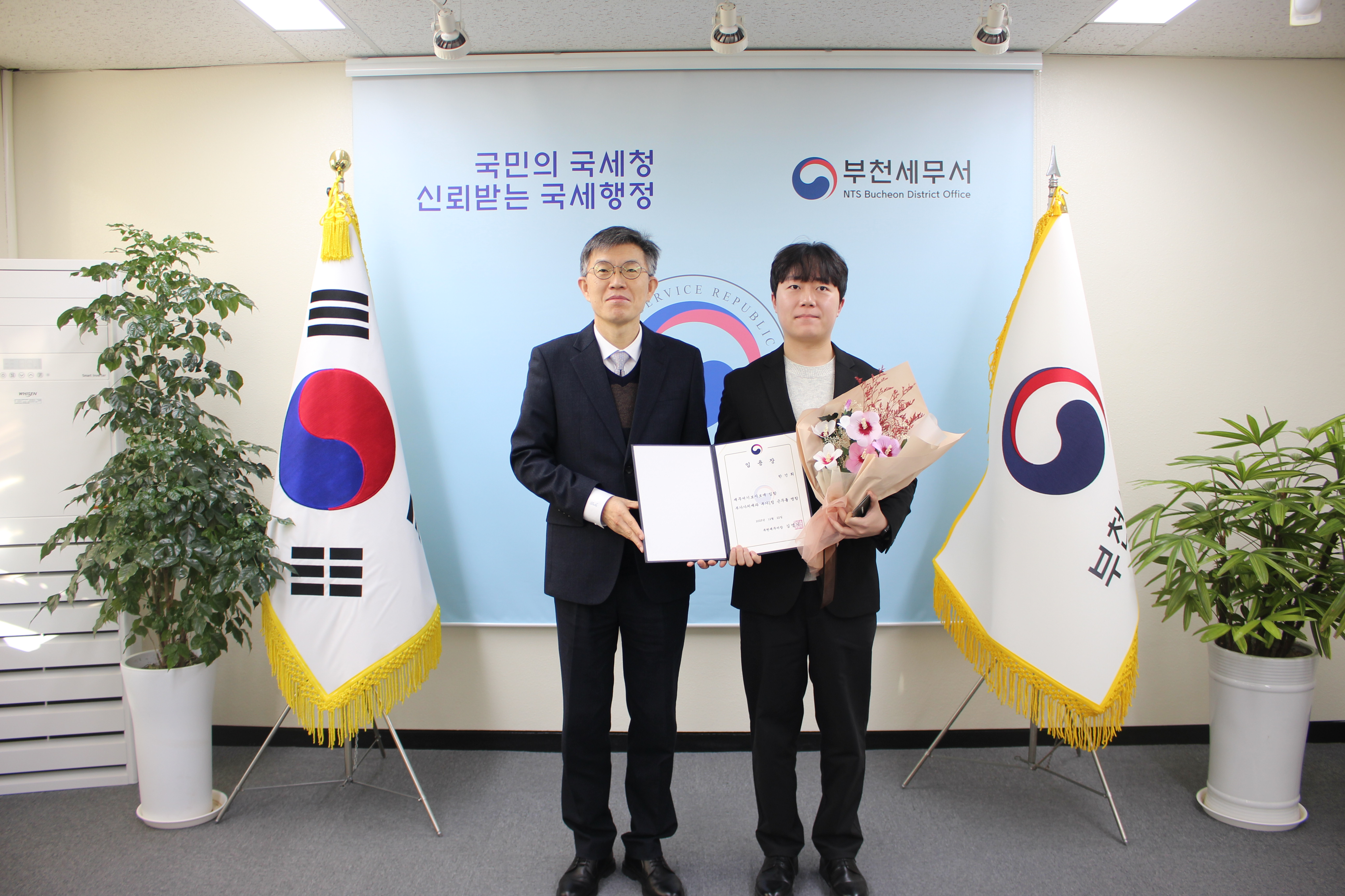부천세무서(서장 김영기)는 2025년 12월 22일(월), 12월 22일(월) 字로 신규 임용된 한건희 국세조사관에 대한 임용장 수여식을 진행하였습니다.