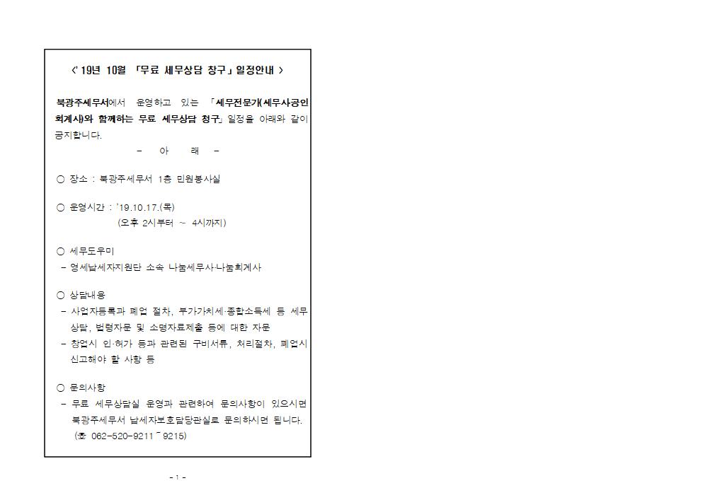 '19년 10월 무료 세무상담 창구 일정.hwp