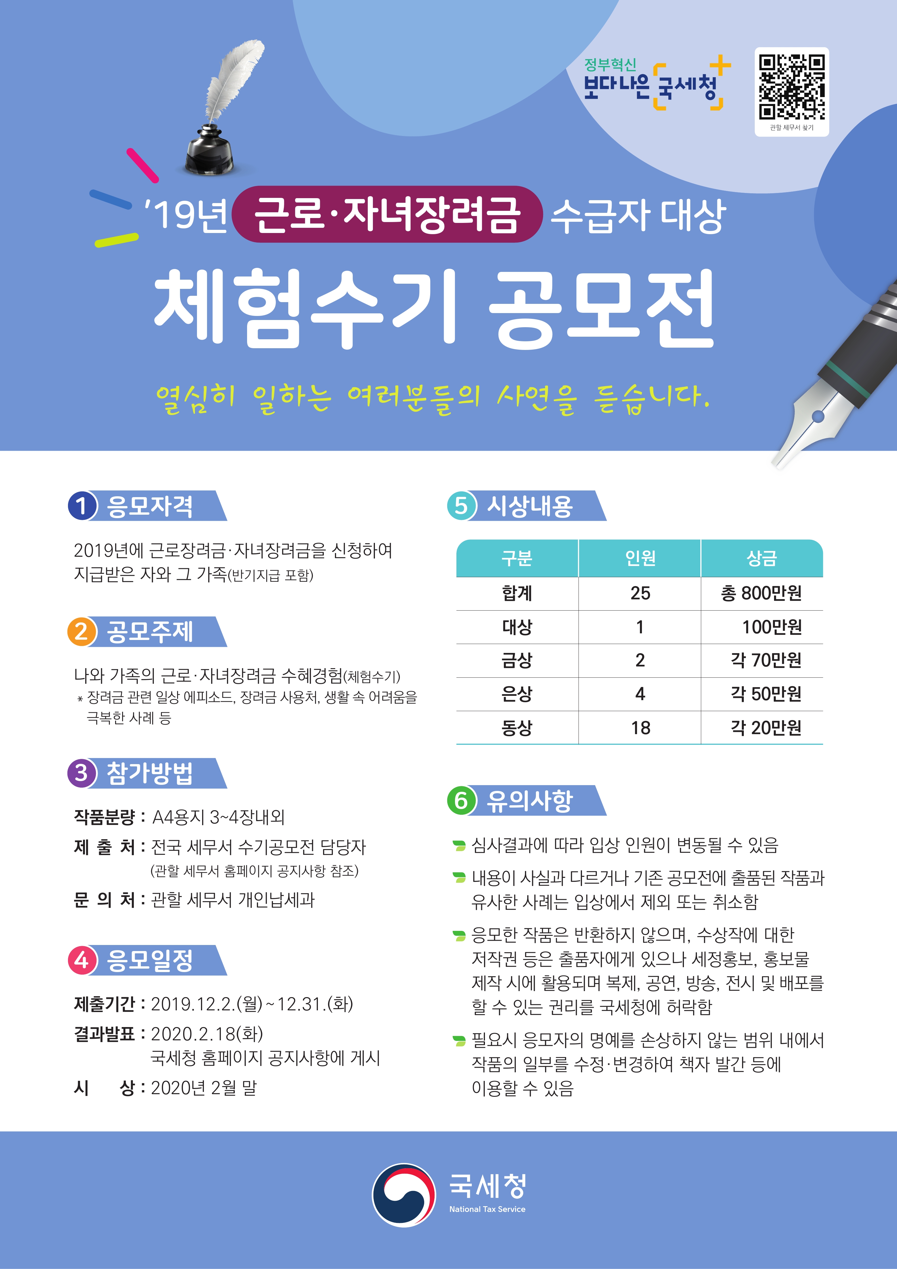 공모전 담당자 : 개인납세2과 최다혜 520-9382, sbk2119@nts.go.kr