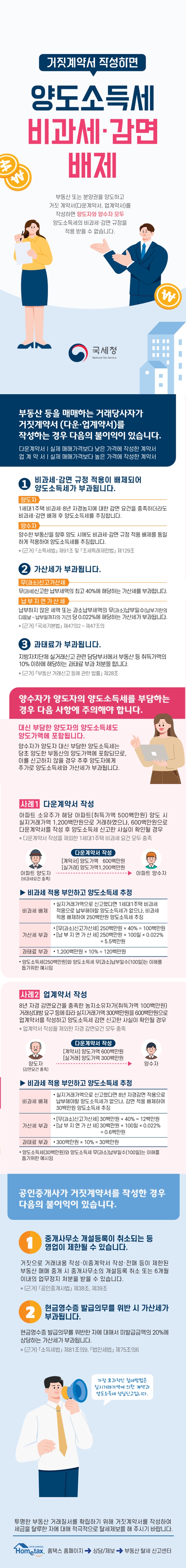 양도소득세 거짓계약서 작성 시 불이익 안내