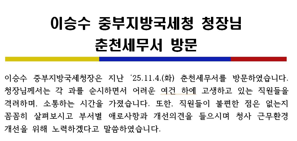 이승수 중부지방국세청 청장님 춘천세무서 방문