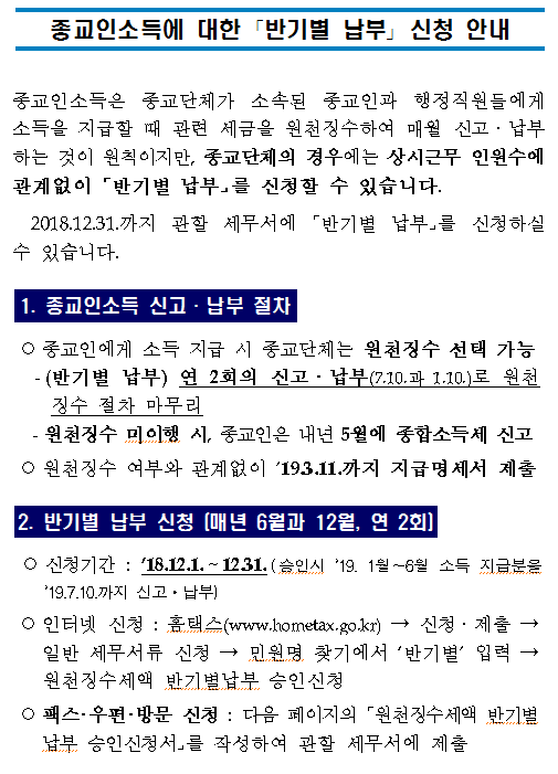 2018년 귀속 연말정산 관련 실무자 설명회 안내