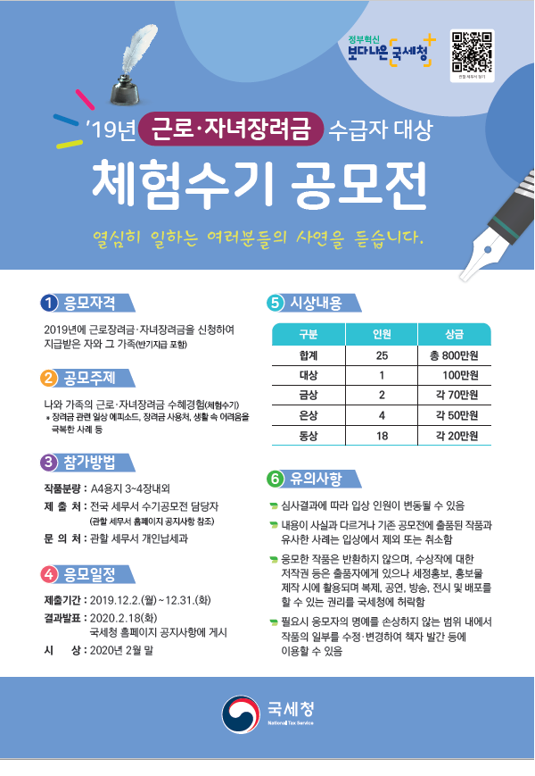 ※동안양세무서 근로 · 자녀장려금 체험수기 담당자 성명: 박혜경 연락처: 031-389-8384 이메일:candy1333@nts.go.kr