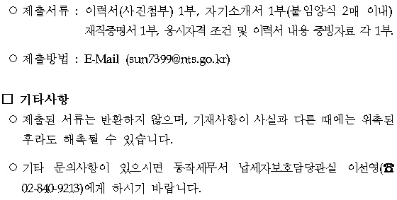 ○제출방법 : E-Mail (sun7399@nts.go.kr)