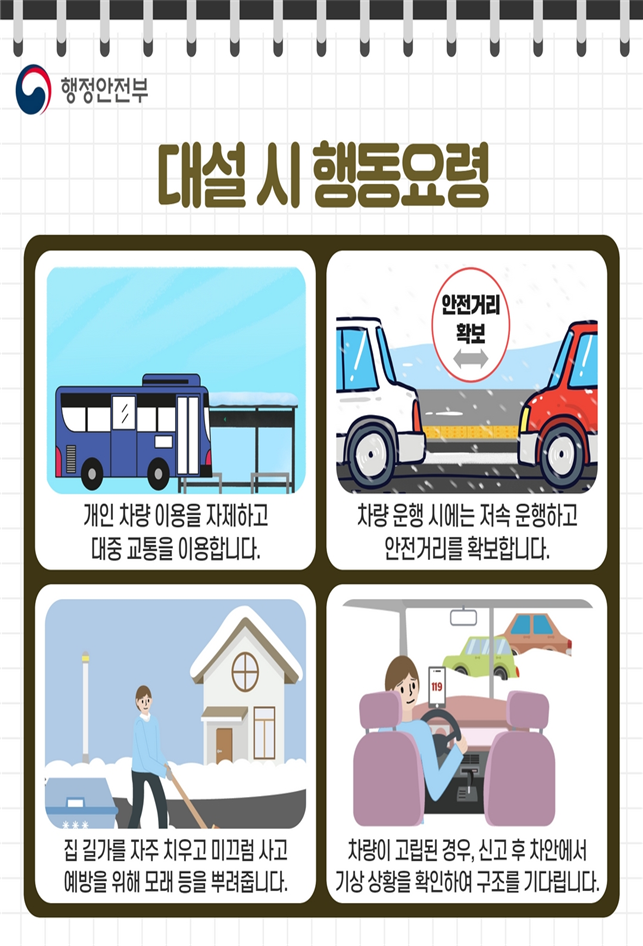- 국민 스스로 재난 대응능력을 강화하기 위한 「국민행동요령」 집중 홍보