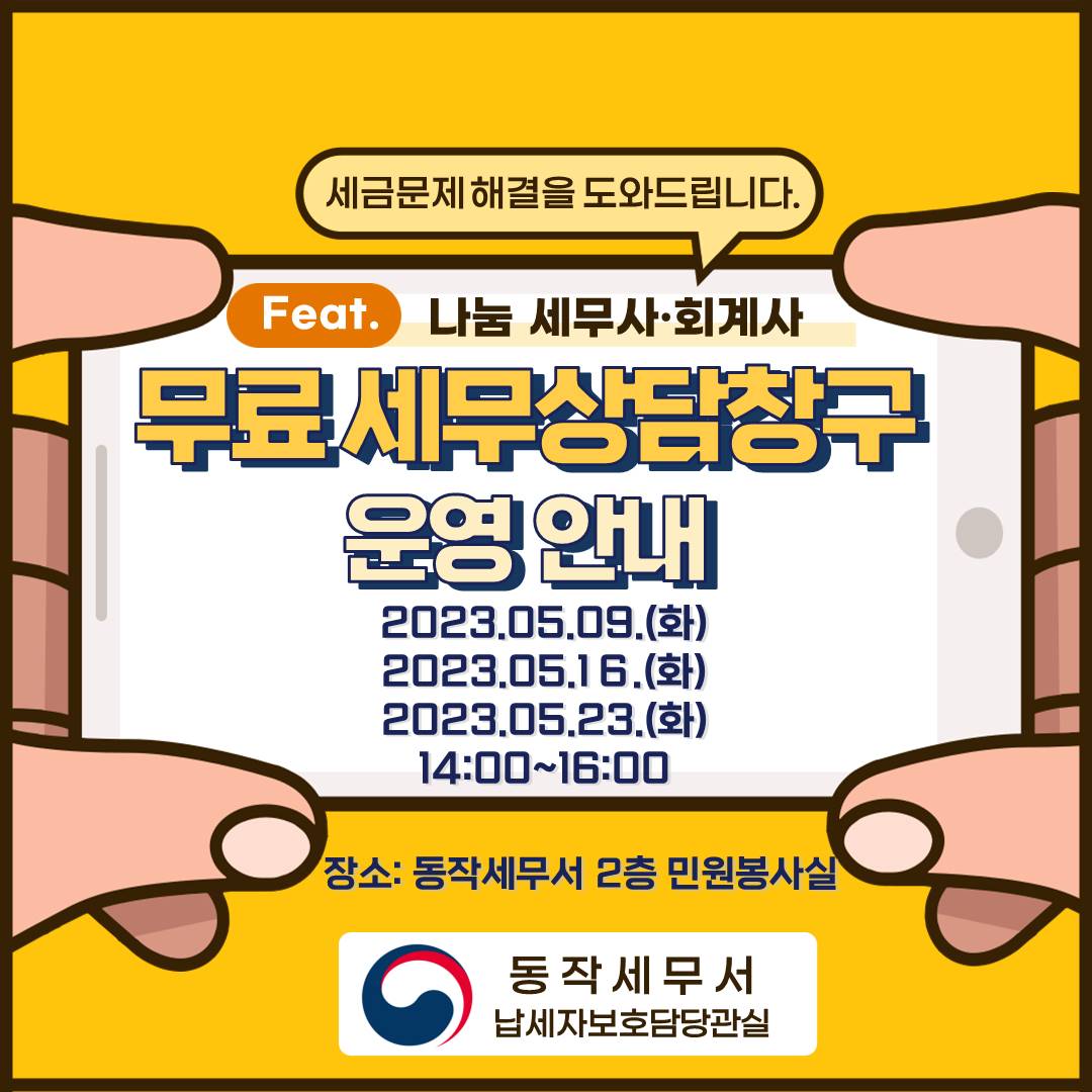 무료세무상담 장소 및 시간 : 동작세무서 2층 민원봉사실, 14:00~16:00(2시간)