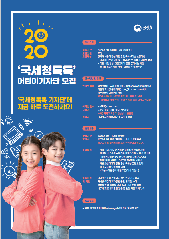 2020년 국세청톡톡 어린이기자단 모집안내