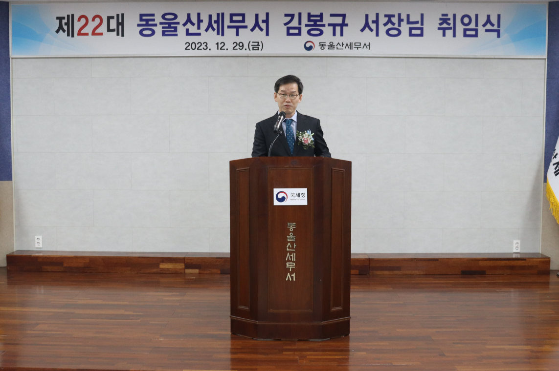 제22대 김봉규 동울산세무서장의 취임식을 가졌습니다.