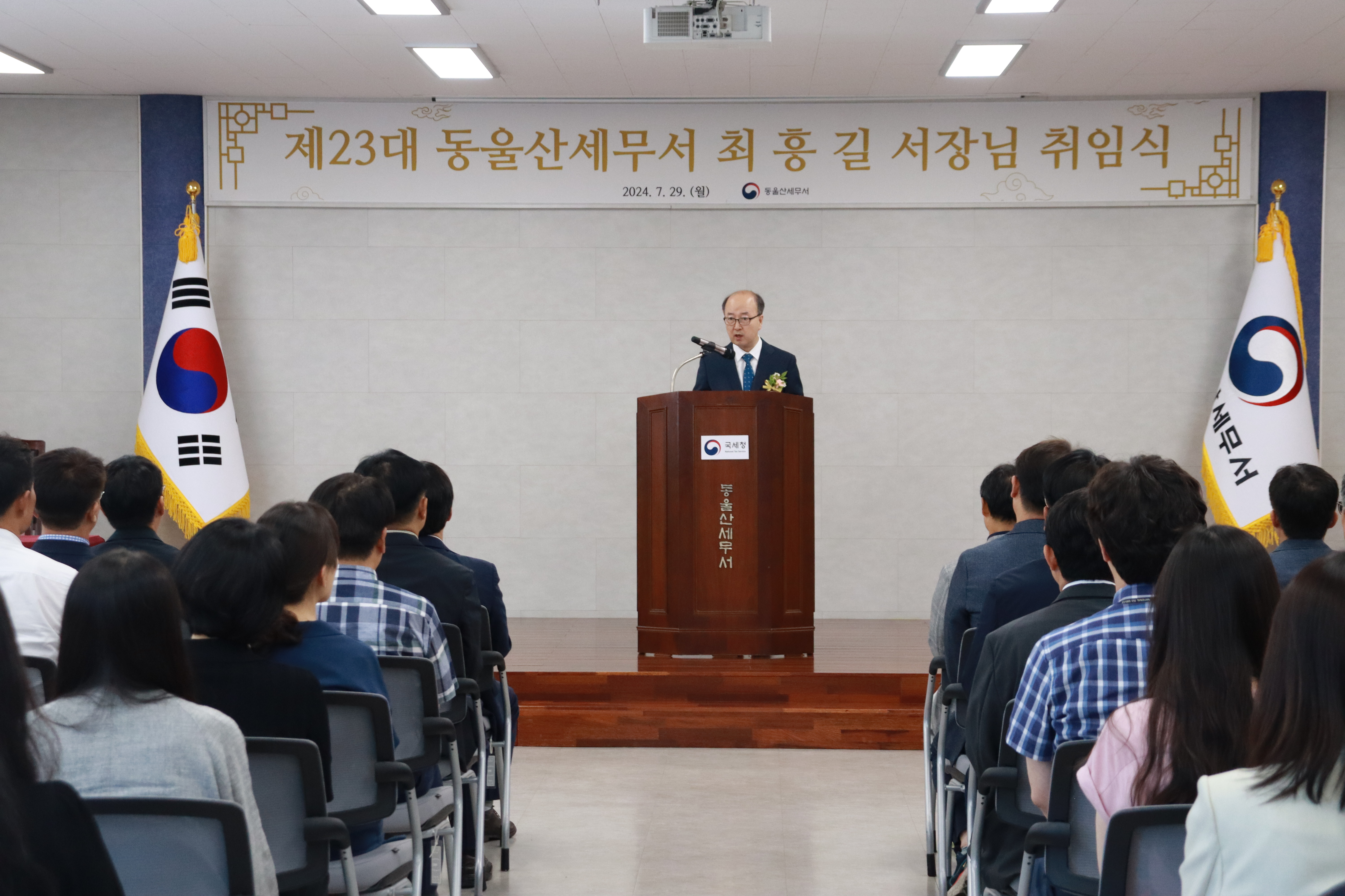 동울산세무서는 2024년 7월29일(월) 대회의실에서 제23대 최흥길 동울산세무서장의 취임식을 가졌습니다.