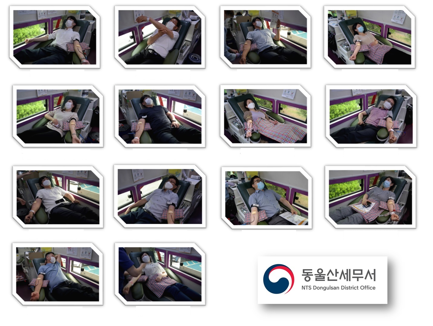 동울산세무서(서장 배상록)는 코로나19로 발생한 헌혈 수급난에 조금이나마 도움이 되기 위하여, 6월 29일 대한적십자 헌혈버스를 이용해 생명나눔 헌혈행사를 진행했습니다. 코로나19가 조기에 종식되기를 기원합니다.
