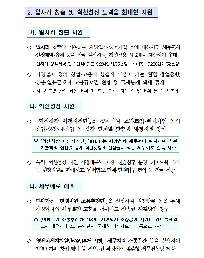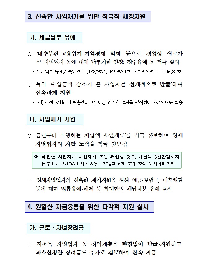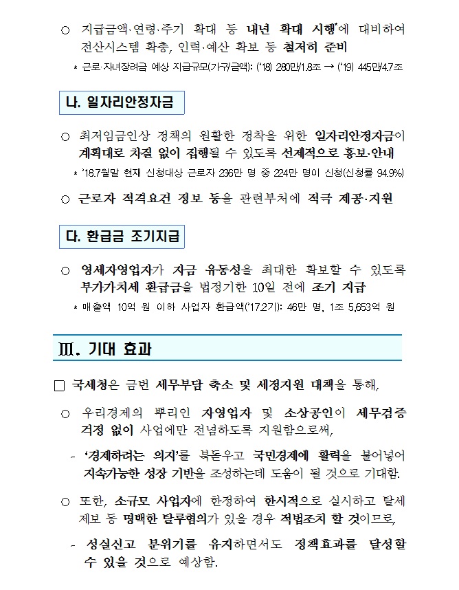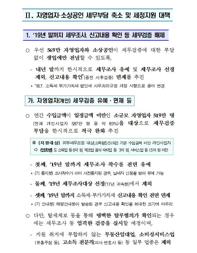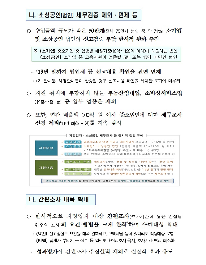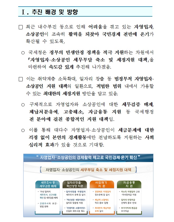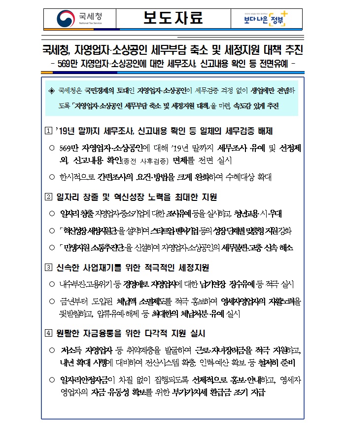 (보도자료)국세청 자영업자, 소상공인 세무부담 축소 및 세정지원 대책