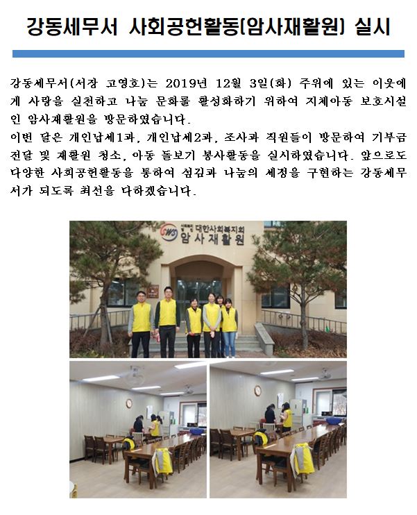 강동세무서 12월 사회공헌활동(암사재활원) 실시
