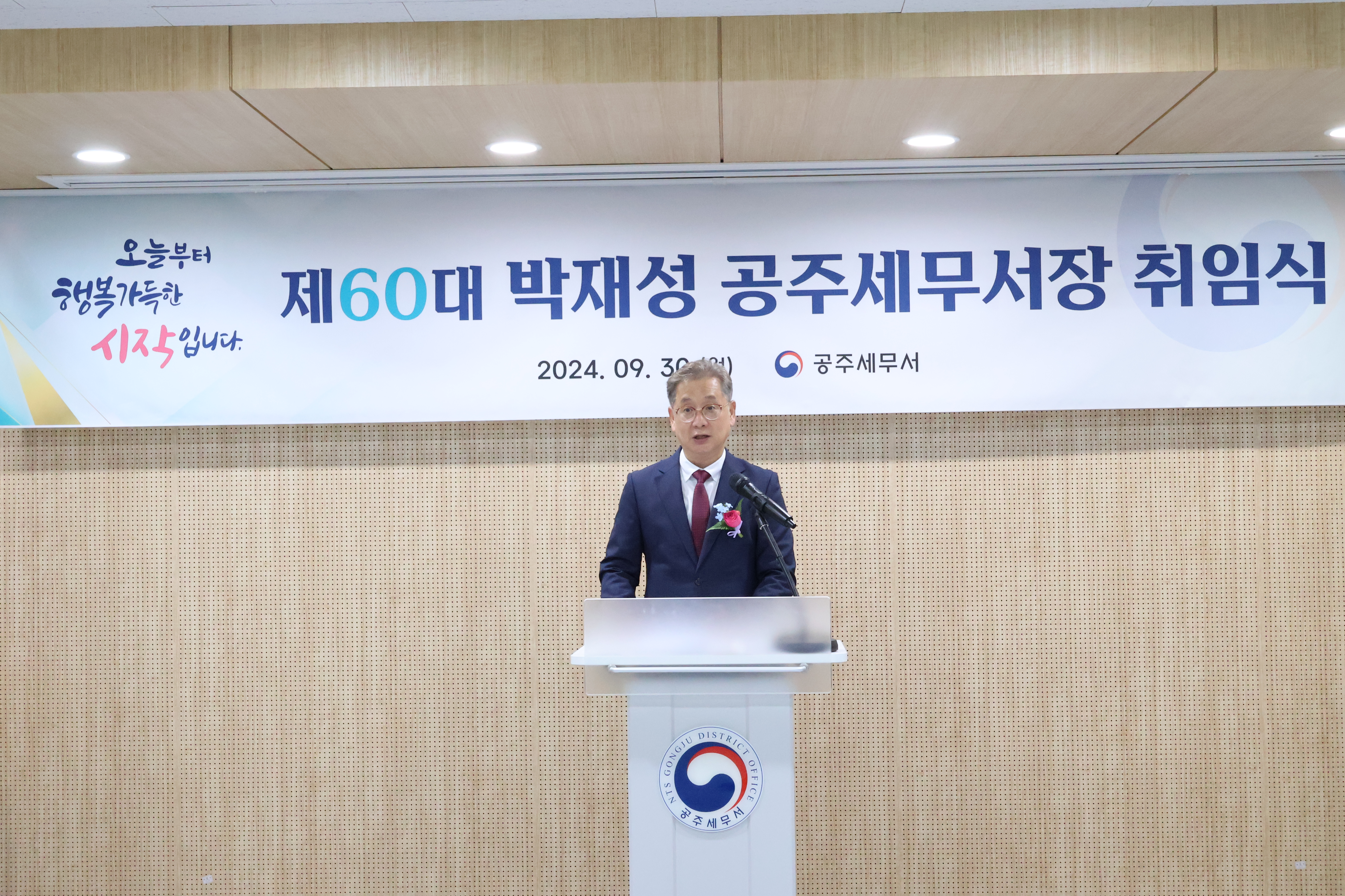 오늘 9월 30일 오후 3시, 제60대 공주세무서장으로 박재성 서장이 취임하였습니다. 새로 취임한 박재성 서장은