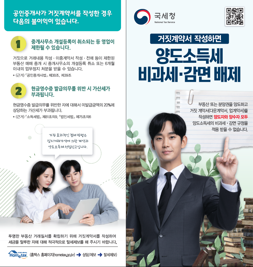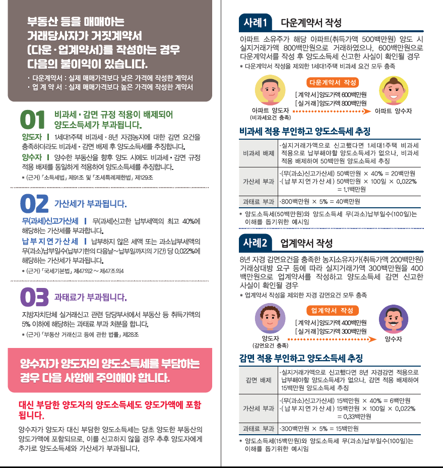 거짓계약서 작성 시 양도소득세 불이익 안내