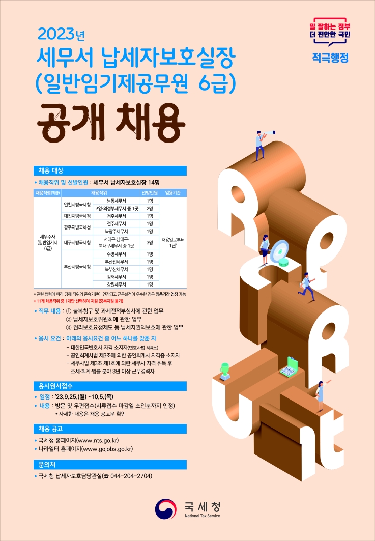 국세청 일반임기제공무원(6급) 채용을 붙임과 같이 공고합니다.