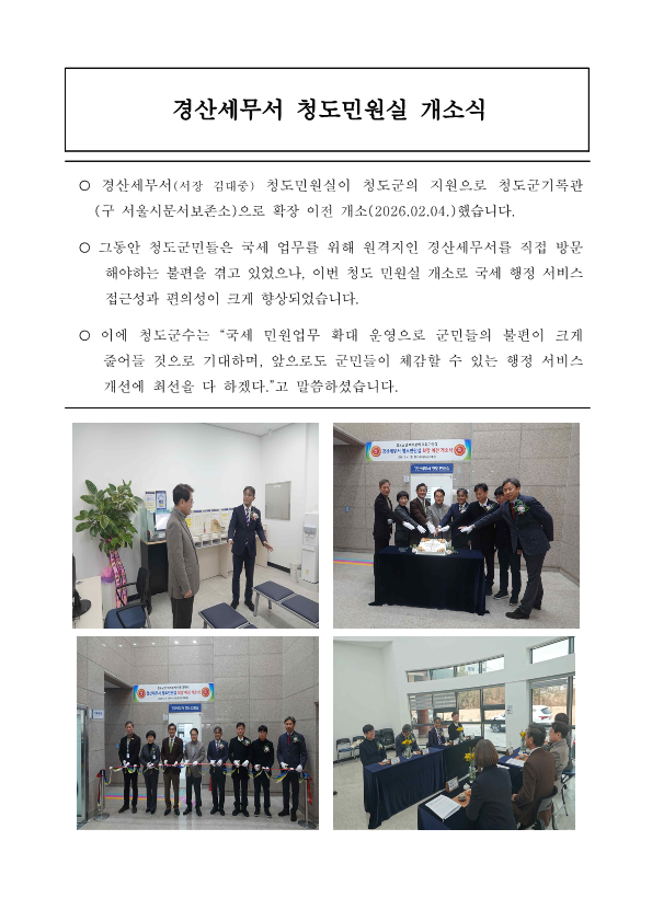 경산세무서 청도민원실 개소식 (2026.02.04.)