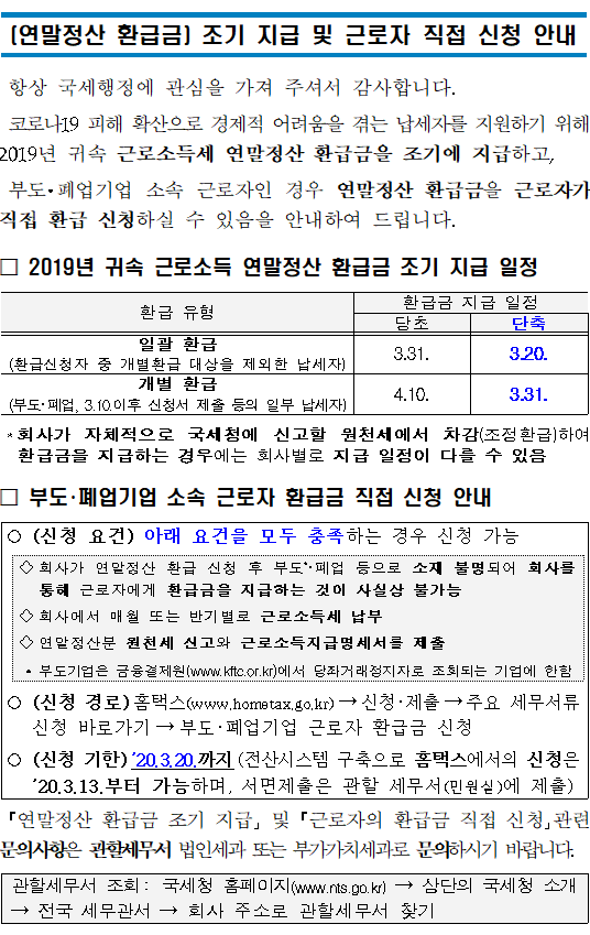 연말정산 환급금 조기지급 및 근로자 직접 환급 방안