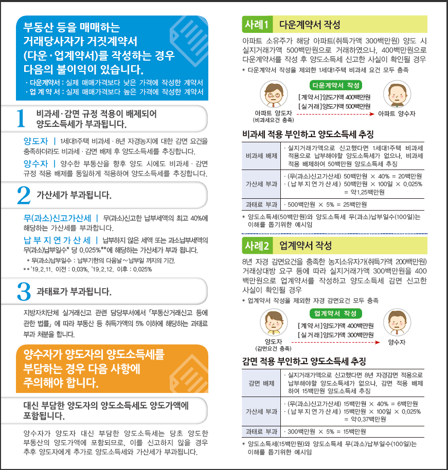 거짓계약서 양도소득세 비과세 · 감면 배제