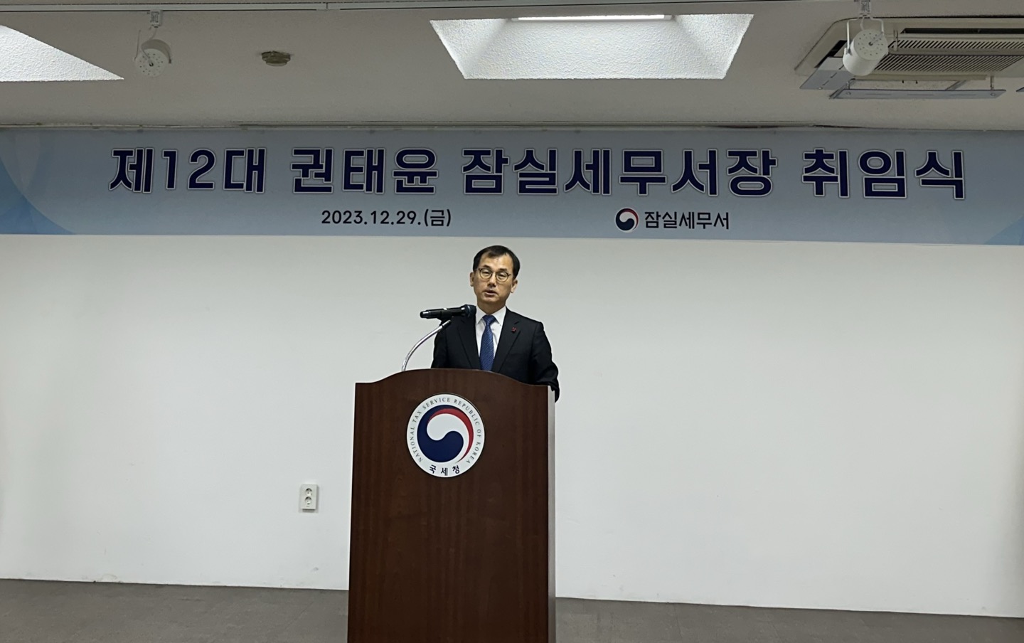 잠실세무서에서는 2023.12.29.(금) 제12대 권태윤 잠실세무서장의 취임식을 진행하였습니다.