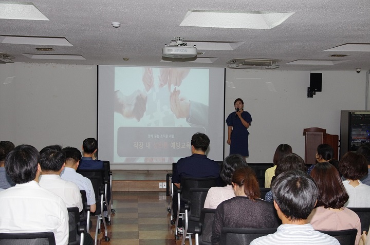 잠실세무서(서장 정종식)는 7월 2일 전직원을 대상으로 외부 전문강사를 초빙하여 사회적으로 문제가 되고 있는 4대폭력(성희롱, 성매매, 성폭력, 가정폭력) 예방교육을 실시하였습니다.폭력없는 활기찬 조직문화를 통해 밝고 친절한 대민서비스를 제공하는 데에 앞장서는 잠실세무서가 되겠습니다.