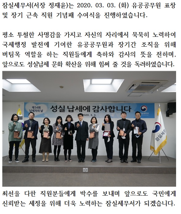 유공공무원 표창 및 장기근속 직원 기념패 수여식