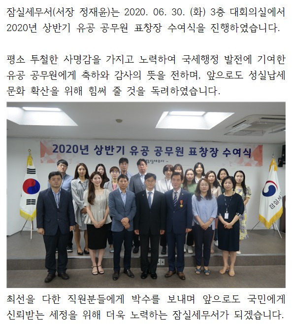 2020 상반기 유공공무원 표창 수여식