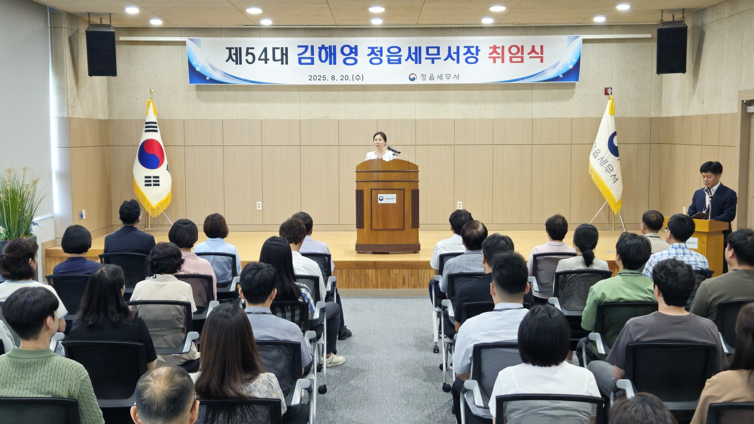 정읍세무서는 2025.8.20.(수) 3층 대회의실에서 제54대 김해영 세무서장의 취임식을 개최하였습니다.