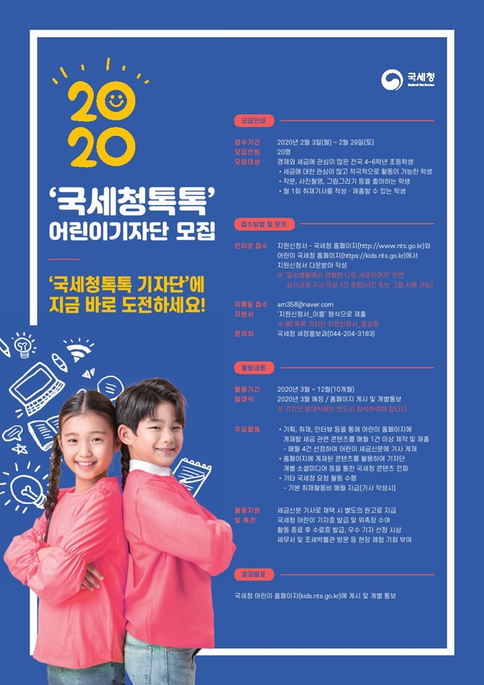 2020년 국세청 톡톡 어린이 기자단 모집
