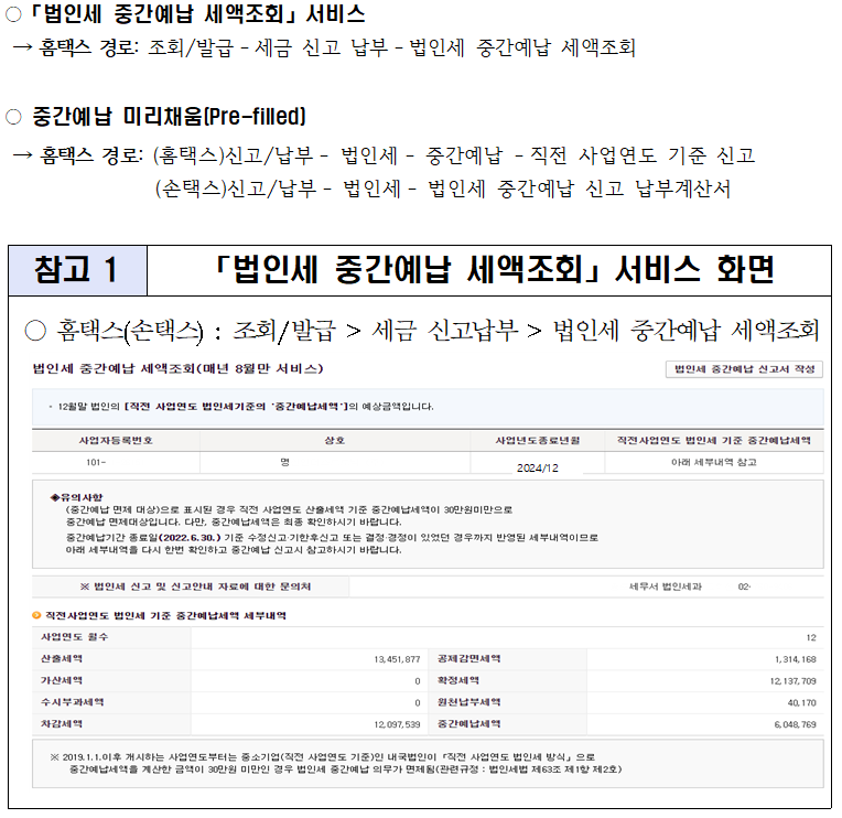 2024년 8월에 실시하는 「2024.12월말 법인세 중간예납 신고」와 관련하여