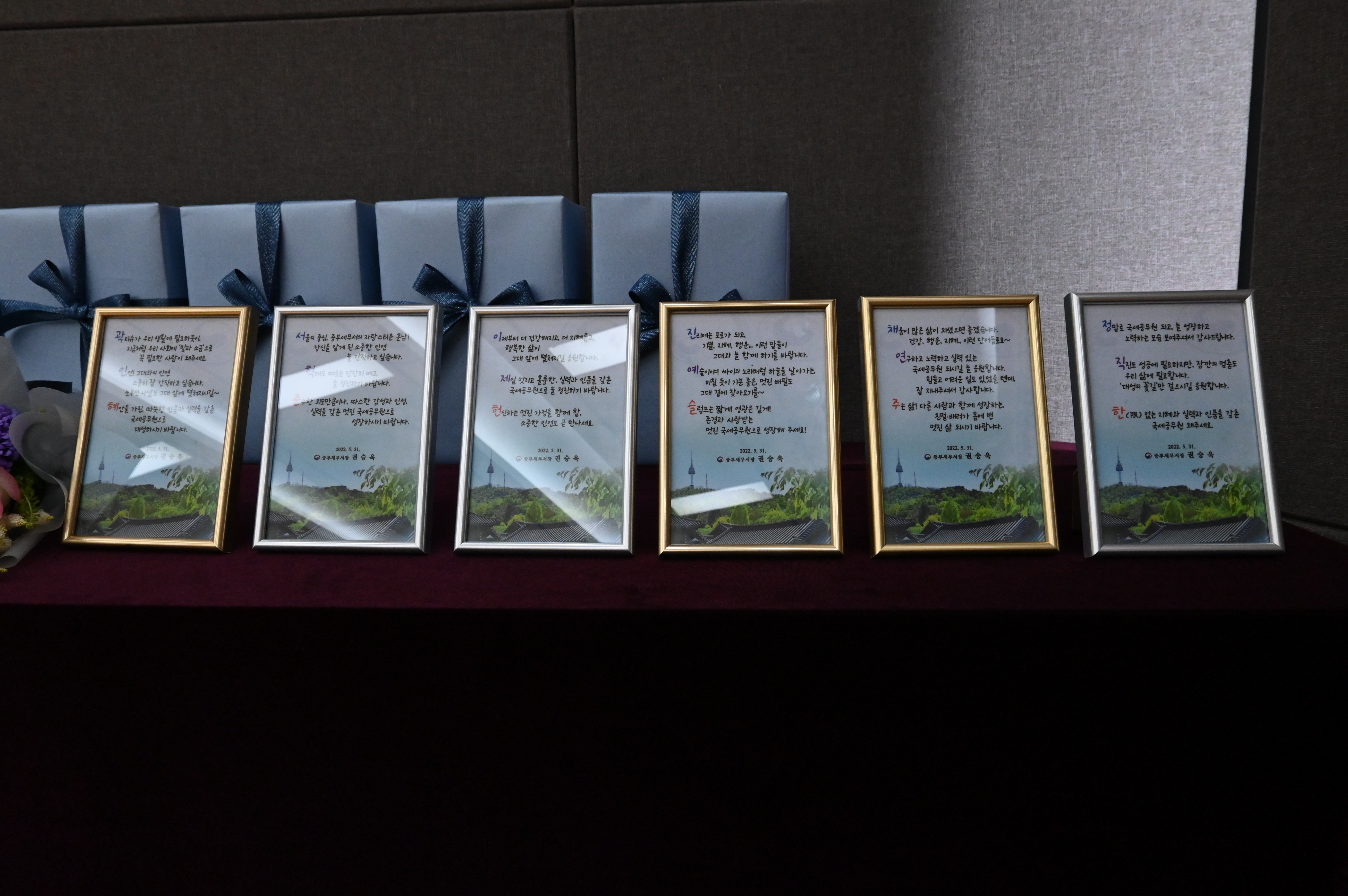 권승욱 서장은 신규직원들의 이름으로 3행시를 지은 글을 액자에 담아 선물하며 입사 후 잘 적응해 준 직원들을 격려하고