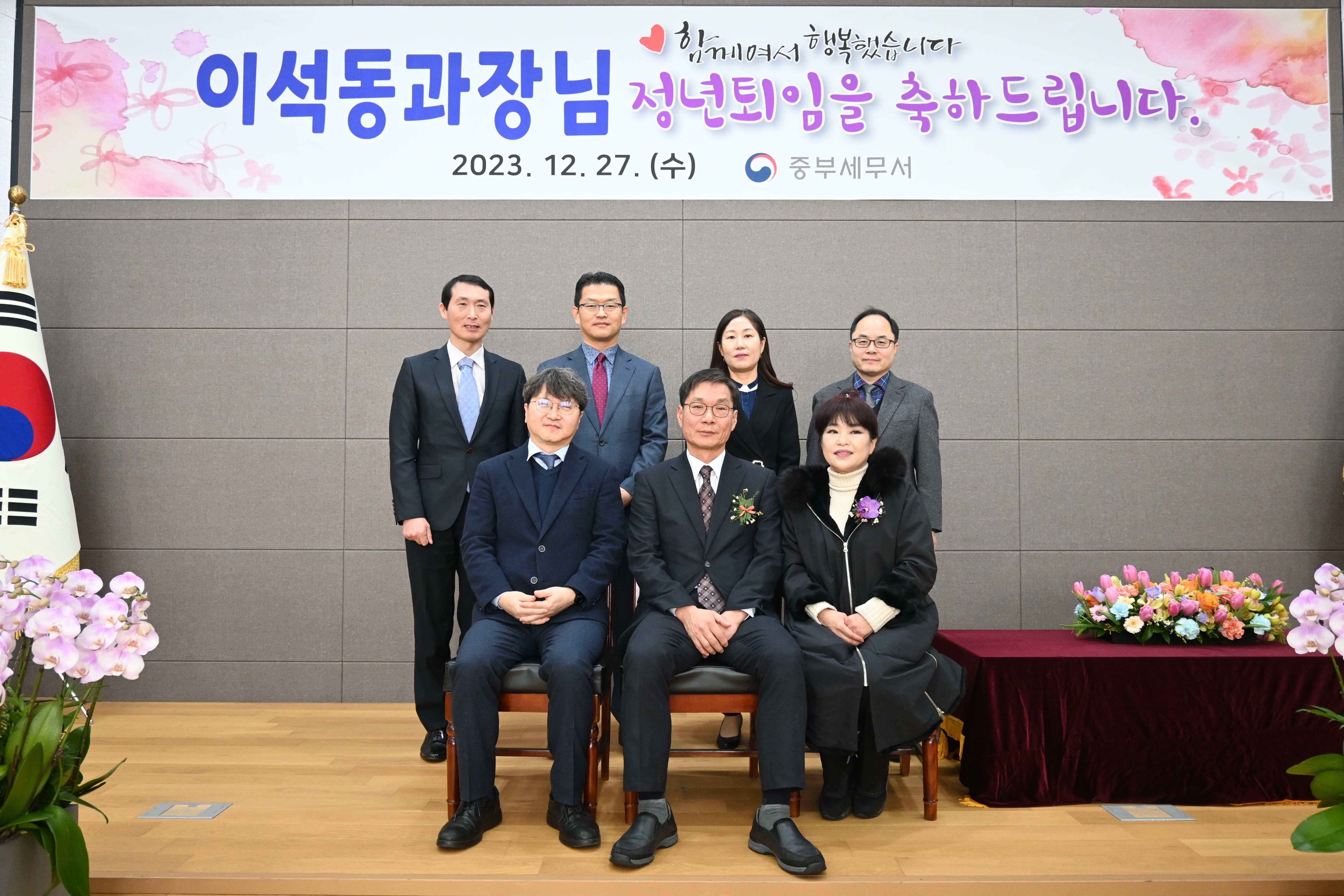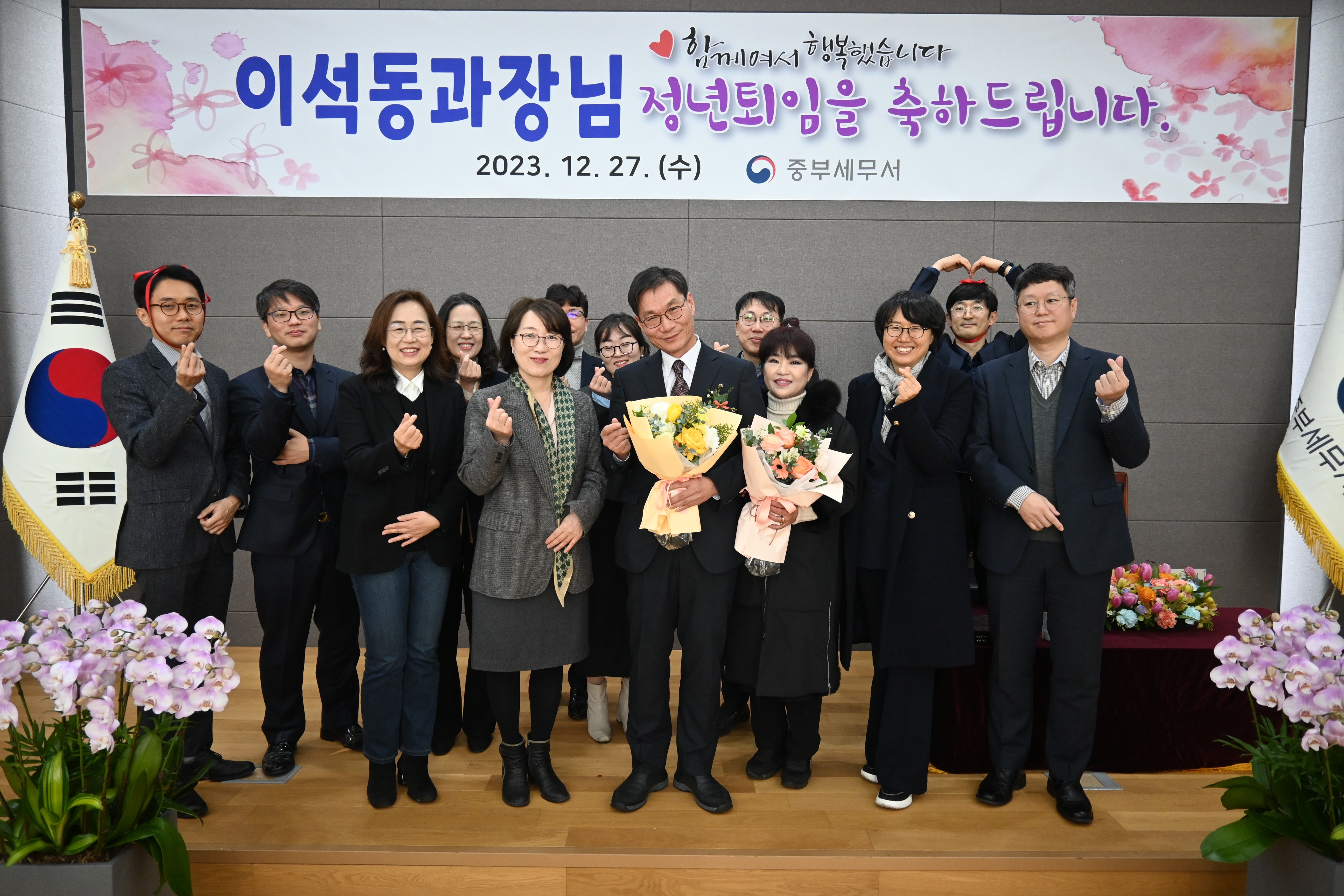 중부세무서에서는 지난 12월 27일(수) 10시, 대강당에서 이석동 과장님의 정년퇴임식이 있었습니다.