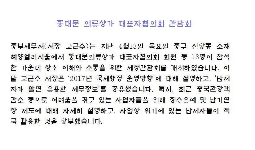 동대문의류상가 대표자협의회 간담회