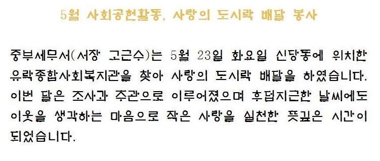 5월 사회공헌활동, 도시락 배달 봉사