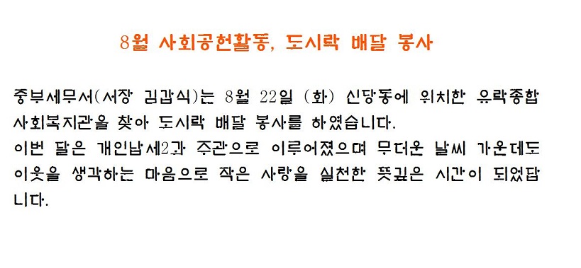 8월 사회공헌활동, 사랑의 도시락 배달 봉사