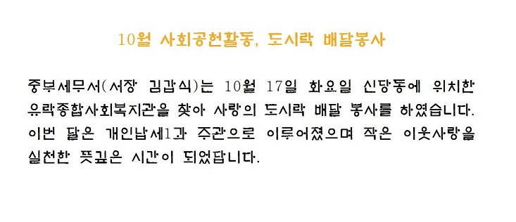 10월 사회공헌활동, 사랑의 도시락 배달 봉사