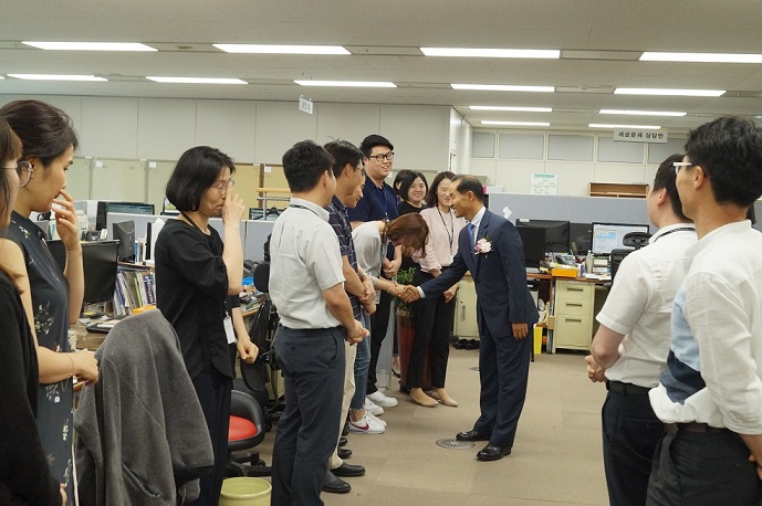 중부세무서는 2018.7.6.(금) 김갑식 서장의 이임행사가 있었습니다. 지난 2017.7.27. 취임한 김갑식 서장은 이임식을 생략하고 각과를 돌면서 그간 동고동락해 온 직원들의 도움과 노고에 감사인사를 하였습니다. 61대 서장으로 취임하신 후 중부세무서의 발전을 위한 아낌없는 공로에 감사드리며, 앞으로도 좋은 일만 가득하시기를 기원합니다!