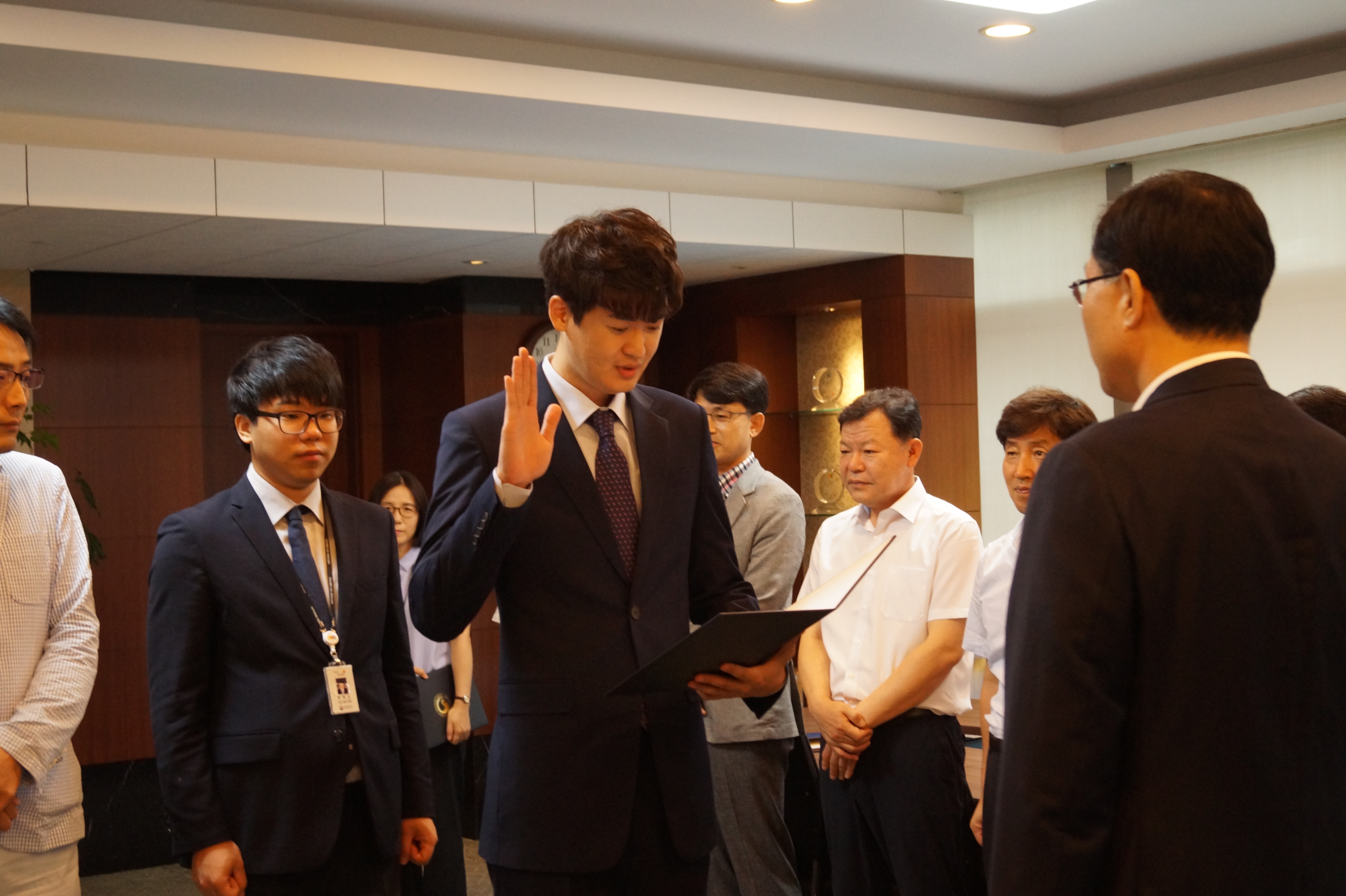 중부세무서(서장 김길용)는 2018.8.6.(월) 승진직원 임명장 및신규직원 인사발령 통지서 수여식을 가졌습니다.김길용 세무서장은 따뜻한 환영인사와 격려의 말씀을 전하며,직원들의 승진 및 신규 발령을 축하하였습니다.
