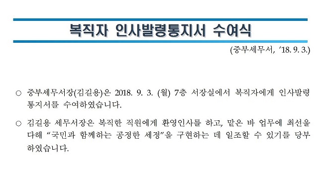 복직자 인사발령통지서 수여식