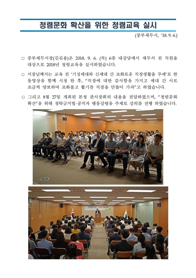청렴교육 실시