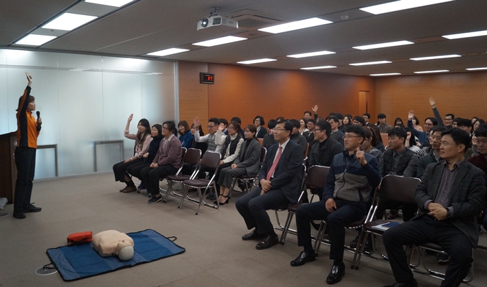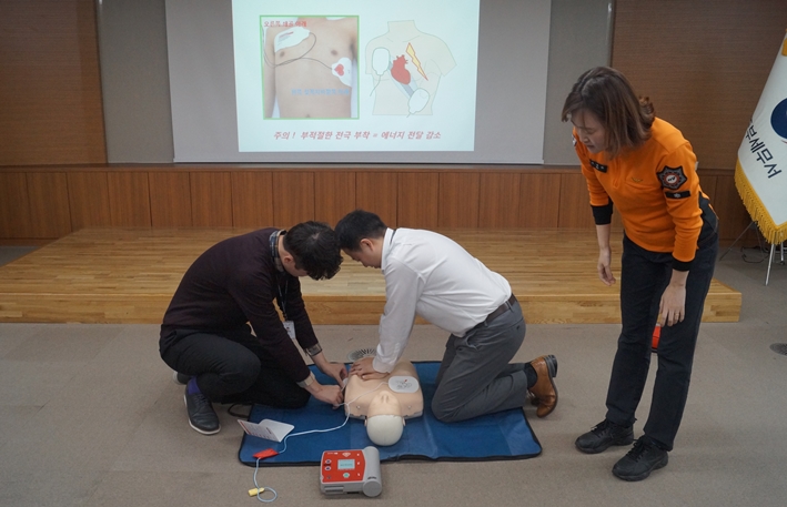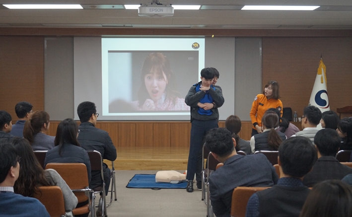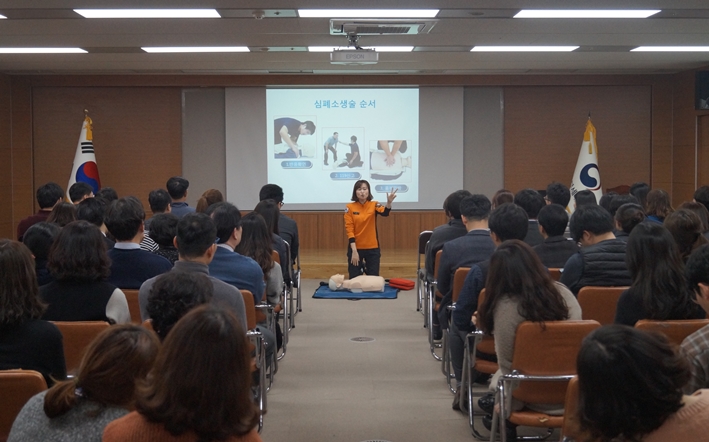 ○ 중부세무서장(김길용)은 중부소방서에 협조 요청하여 서정화 주임을 초빙해 2018. 11. 26. (월) 6층 강당에서 전 직원들에게 심폐소생술 교육을 실시하였습니다. 119신고를 받고 직접 출동해 심폐소생술로 생명을 구한 사례를 듣고, 직원들이 상황실습을 하면서 위급상황 대처능력을 키울 수 있었던 유익한 교육이었습니다. '골든타임을 놓치지 말아야 한다'는 심폐소생술의 중요한 목적을 일깨워준 중부소방서에 진심으로 감사드립니다.