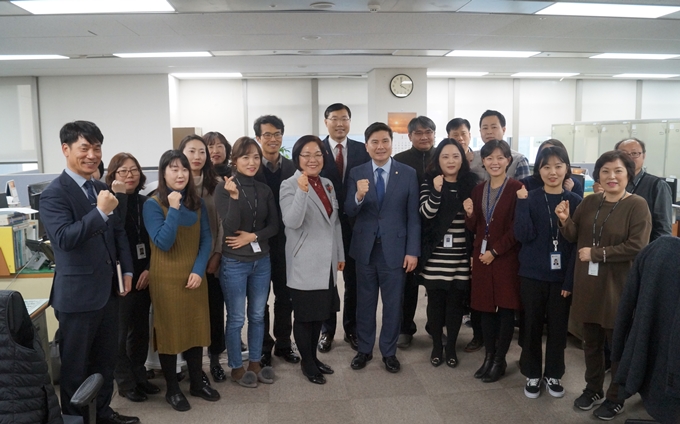 ○ 중부세무서장(김길용)은 2019. 1. 23. (수) 7층 서장실에서 신년 인사차 내방한 중구지역 국회의원(지상욱)을 접견하고 세정현안을 설명한 후 국세행정에 대한 협조를 요청하였습니다. 이어, 지상욱의원과 함께 각 과를 방문하여 부가가치세 신고 및 연말정산 업무에 최선을 다하고 있는 직원들을 격려하였습니다.