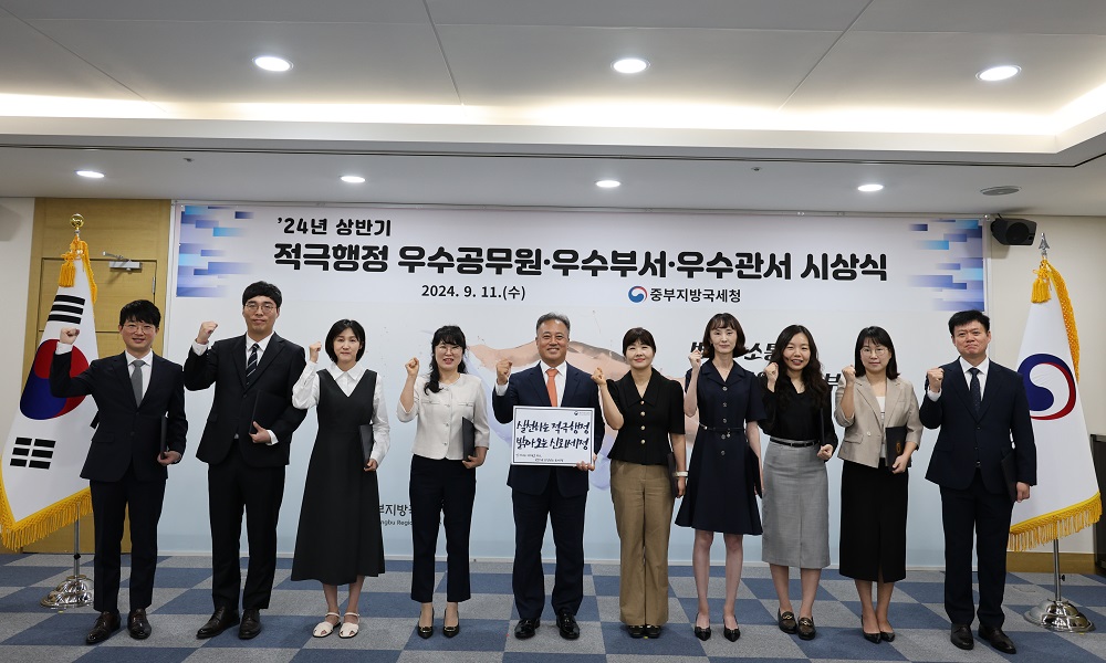 박재형 중부지방국세청장은 적극행정 우수공무원과 우수부서‧우수관서의 주기여자에게 국세청장상(1명)과 지방청장상(9명)을