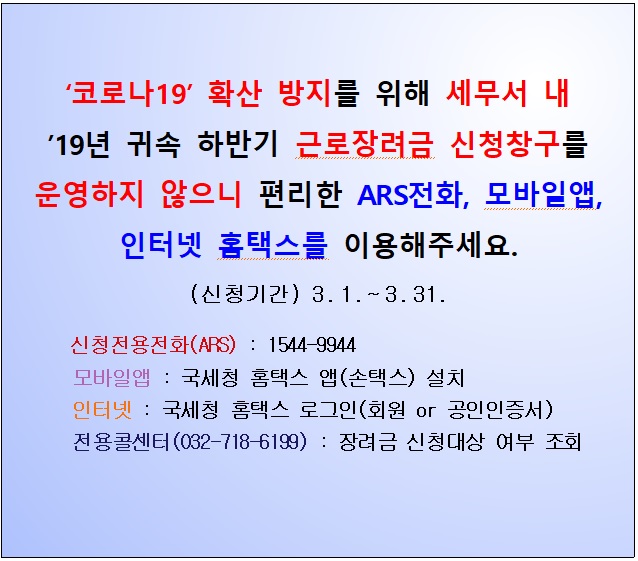 근로장려금 반기 신청창구 미운영 안내