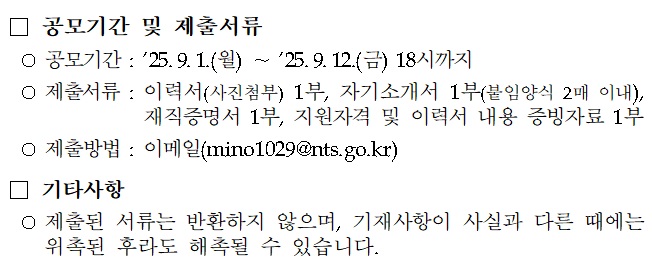 ○제출방법 : 이메일(mino1029@nts.go.kr)
