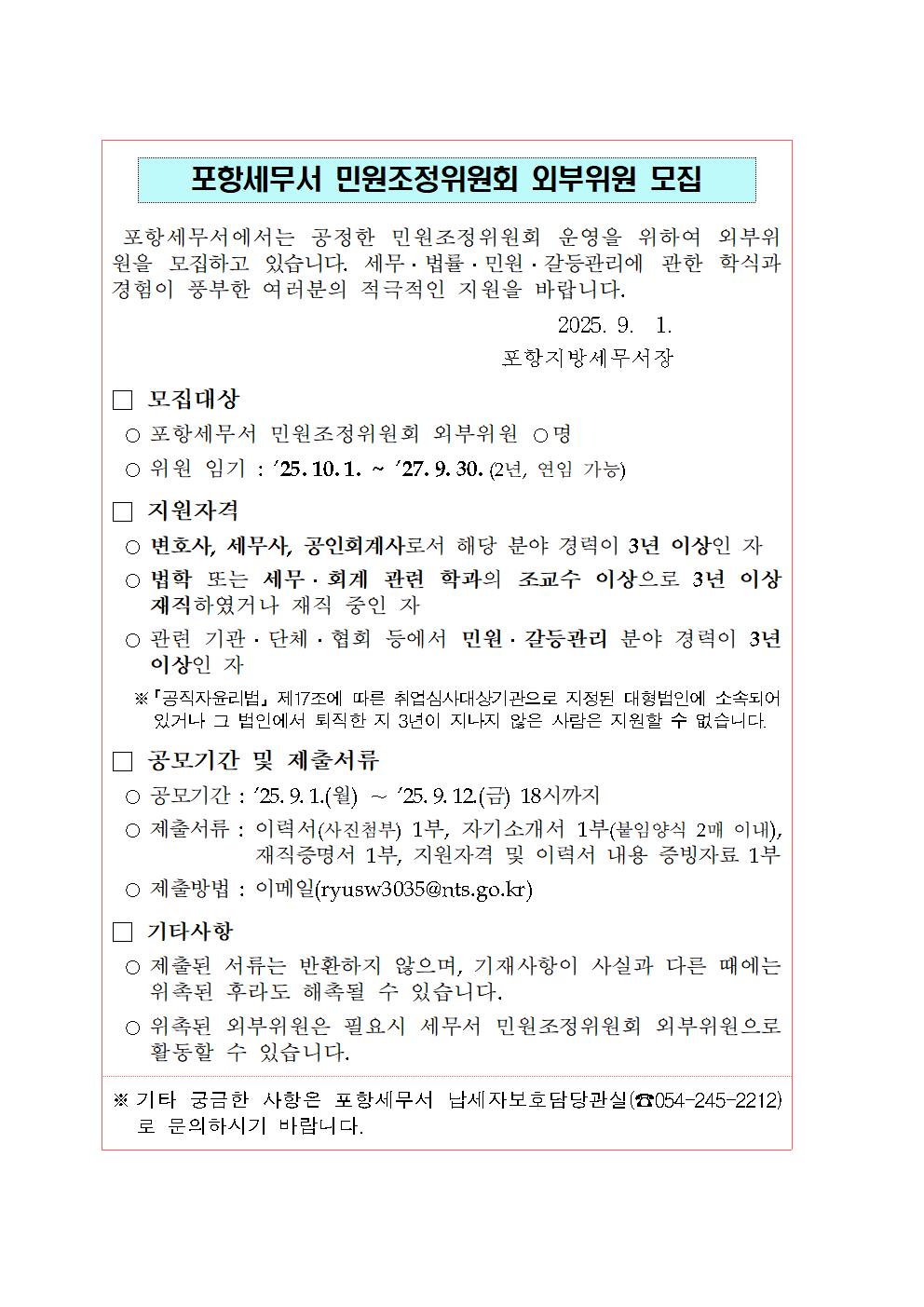 민원조정위원회 외부위원 공개모집 공고.hwpx