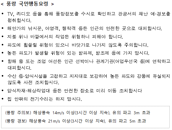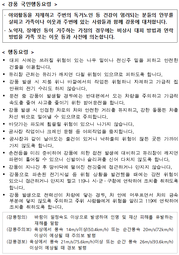 강풍·풍랑 국민행동요령 [출처: 행정안전부 국민재난안전포털]