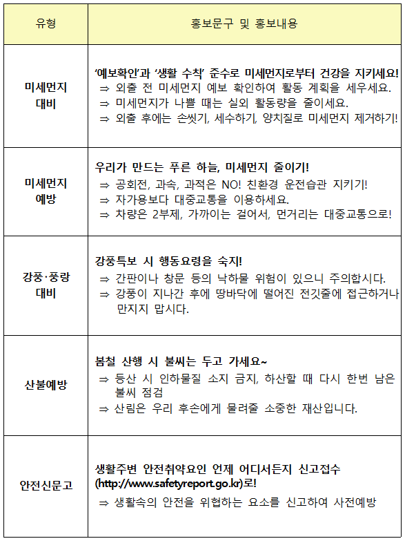 재난 유형별 홍보문구