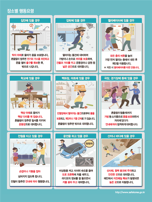 지진 시 국민행동요령(1) [출처: 행정안전부]